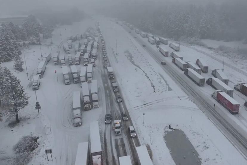 ABD’nin California eyaletine bağlı Truckee kentinde etkili olan yoğun kar yağışı nedeniyle çok sayıda tır ve kamyon mahsur kaldı.