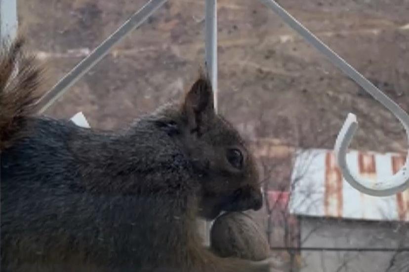 Aç kalan sincaplar pencerelere misafir oluyor
