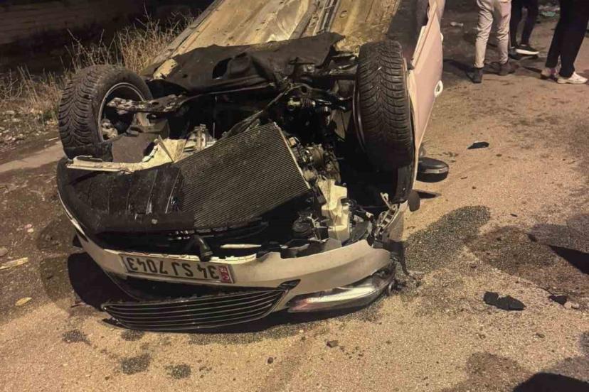 Ağrı’da kazada kaldırıma çarpan araç takla attı: 2 yaralı