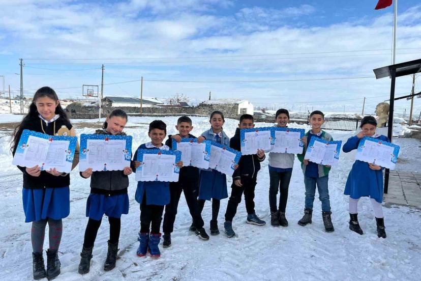 Akyaka’da köy okulunda öğrenciler karnelerini aldı