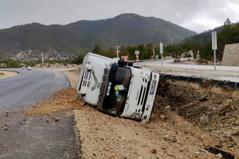 Antalya’da kamyon devrildi, sürücü yaralandı