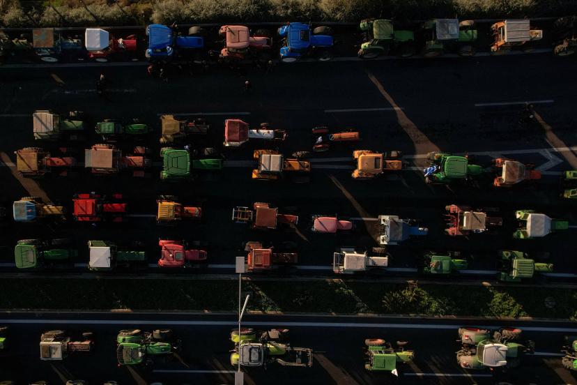 Yunanistan'da çiftçiler, Atina ile Selanik arasındaki otoyolda traktörleriyle yol kapama eylemi düzenledi.