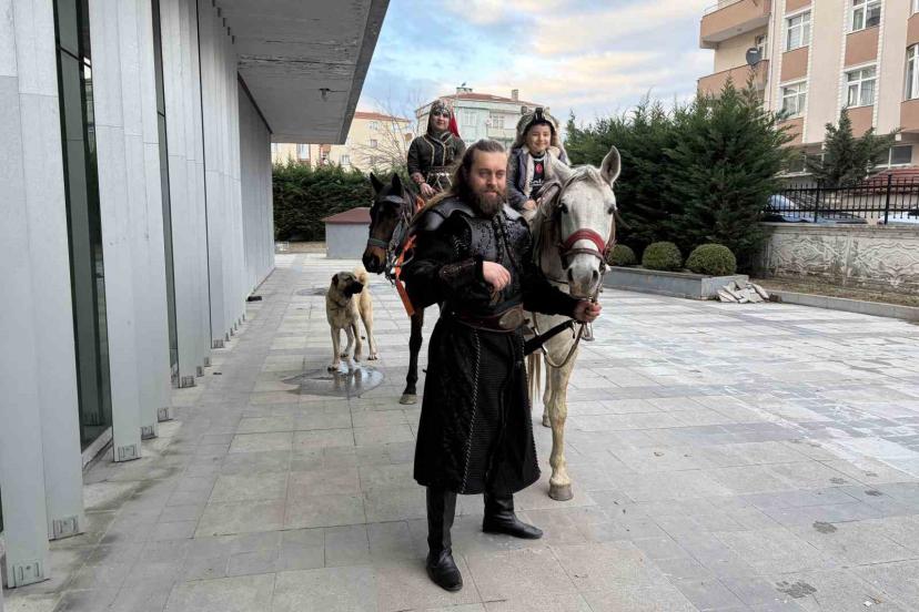 Diriliş Ertuğrul dizisinin Melikşah Alp’i Melikşah Özen ile İlknur Bakay, atları ve film kostümleriyle geldikleri Kapaklı Ata...