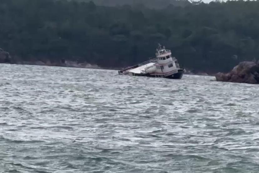 Balıkesir’de fırtına nedeniyle 25 metrelik feribot koya sürüklenerek karaya oturdu