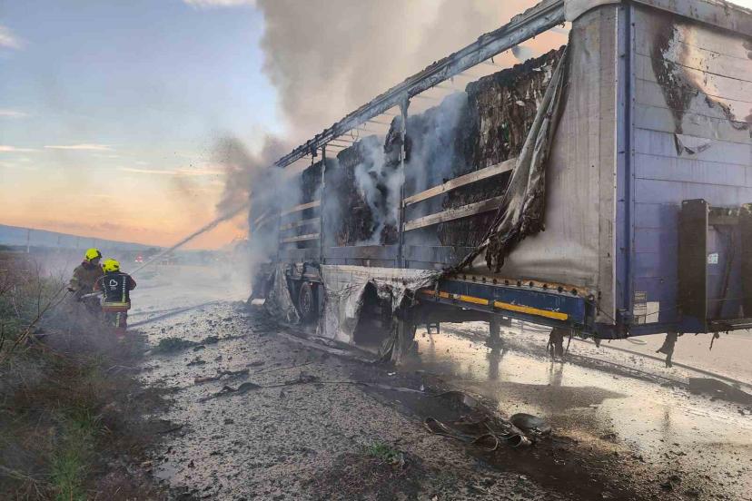 Bandırma karayolunda tır dorsesi alev aldı