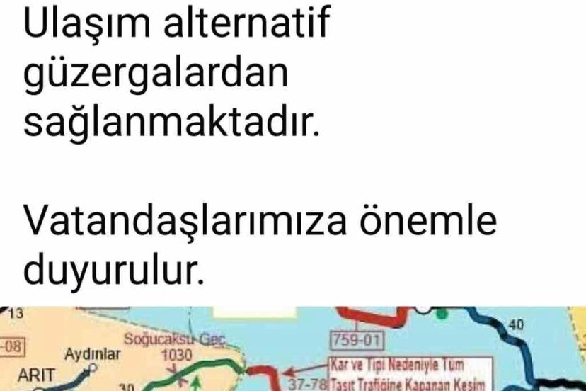 Ulus-Pınarbaşı kara yolunun 0-25 kilometre arasındaki bölümü, yoğun kar yağışı nedeniyle akşam saat 18.00 sıralarında ulaşıma kapandı. Bölgede tipinin de etkili olması nedeniyle kar temizleme çalışmalarının yürütülemediği öğrenilirken, ulaşımın çevredeki alternatif güzergahlara yönlendirildi bildirildi. Çevredeki köylerin sosyal medya hesaplarından yapılan paylaşımlarda ise sürücüler uyarıldı. Yapılan bir paylaşımda, "Yoğun kar yağışı sebebiyle 37-78 KKNo’lu Ulus (Şirinler)-(Bartın-Kastamonu) il sınırı- Pınarbaşı il yolunun 0-25 km’leri arası, saat 18.00 itibarıyla tüm taşıt trafiğine kapatılmıştır. Ulaşım alternatif güzergahlardan sağlanmaktadır. Vatandaşlarımıza önemle duyurulur" denildi.