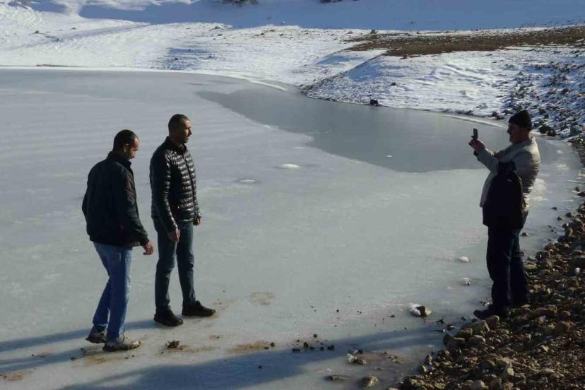 Batman’da donan göletin üstünde fotoğraf çektiler