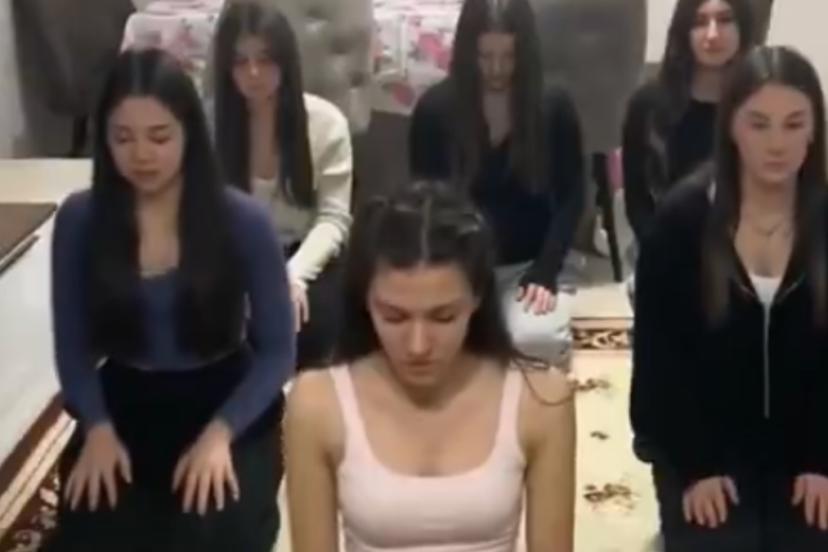 Bir grup genç kız, üzerinde namaza uygun olmayan kıyafetlerle namaz kılarak çekim yaptı.