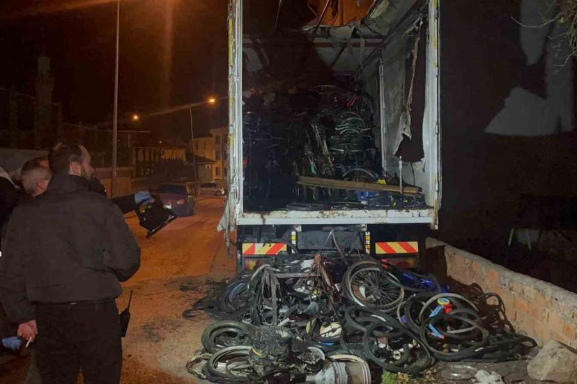 Bisiklet yüklü kamyonda çıkan yangının sebebi araştırılıyor