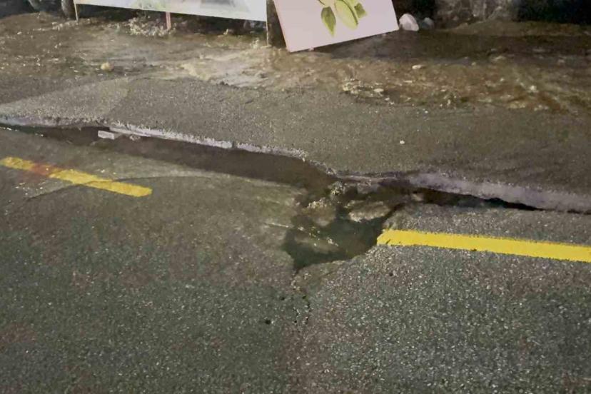 Bodrum’da ana su hattı patladı, yol çöktü
