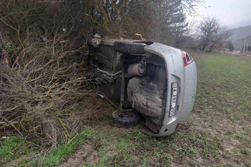 Bolu’da takla atan otomobil metrelerce sürüklendi