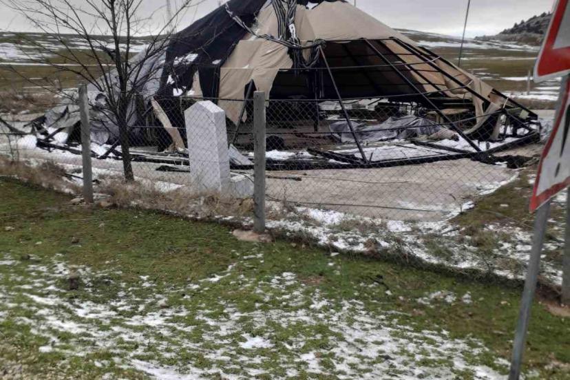 Dinar ilcesindeki Cerit Yaylasına kaymakamlığın desteği ile yapılan çadır salon geçtiğimiz hafta yaşanan fırtınada şiddetli rüzgara dayanamayarak parçalandı.