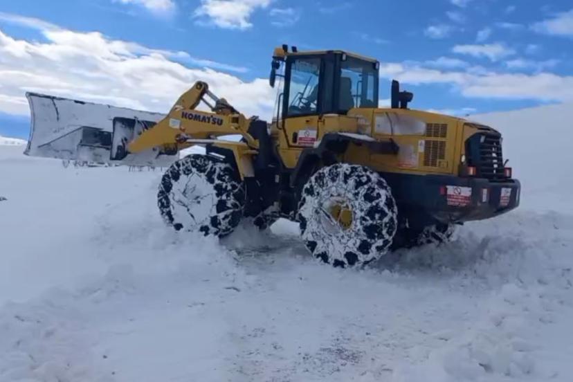 Sivas’ta etkili olan tipi sonrası köy yolunun kapanmasıyla köydeki cenazeyi almak için gitmeye çalışan nakil aracının yolunu iş makineleri açtı.