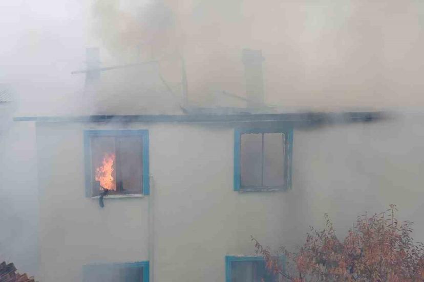Çorum’un Osmancık ilçesinde çıkan yangında iki katlı ev kullanılmaz hale geldi.