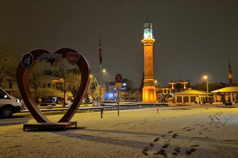 Gece saatlerinde başlayan kar yağışı nedeniyle kent merkezi beyaz örtüye büründü.