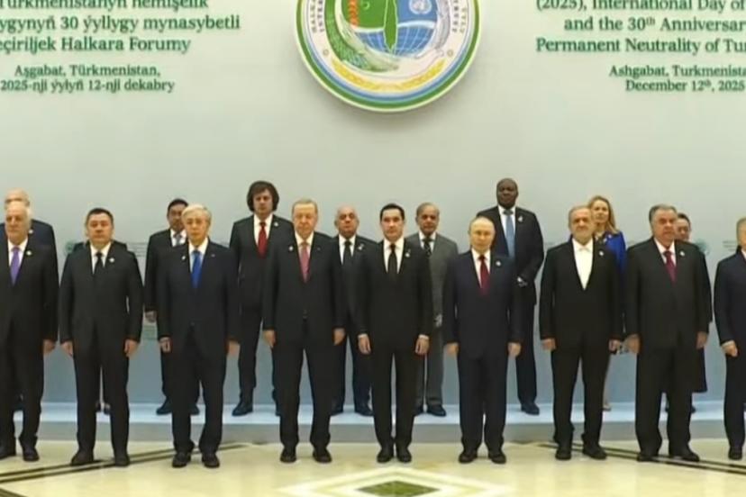 Cumhurbaşkanı Erdoğan, Türkmenistan'ın başkenti Aşkabat'ta düzenlenen "Uluslararası Barış ve Güven Forumu" öncesinde, Forumun gerçekleştirildiği Türkmenistan Maslahatlar Merkezi'nde resmi karşılama töreninin ardından aile fotoğrafı çekiminde yer aldı.