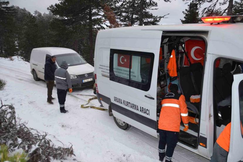 Demirci’de kar nedeniyle yolda mahsur kalan 3 avcı kurtarıldı