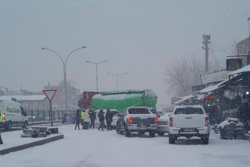 Diyarbakır’da kar yağışı nedeniyle 5 araç bir birine girdi