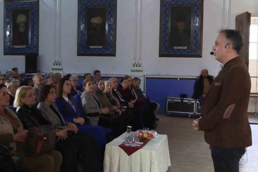 Edirne’de "2025 Aile Yılı" etkinlikleri çerçevesinde ebeveynlere yönelik düzenlenen seminerde konuşan Psikolojik Danışman ve ...