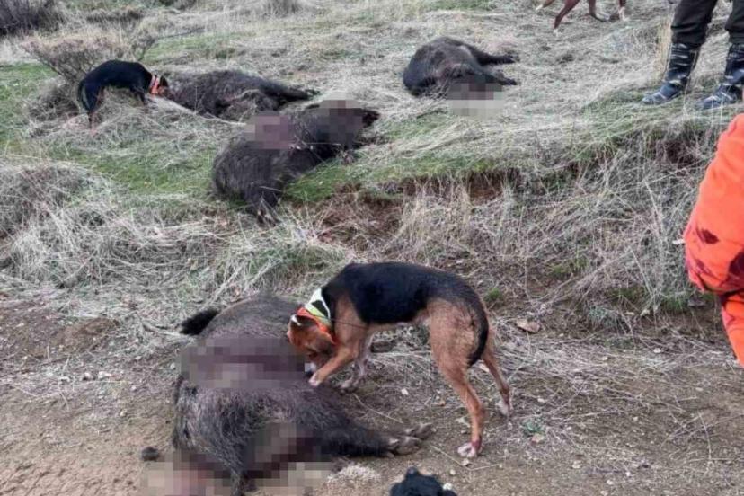 Av turizmi kapsamında avcılar, Elazığ’da dağlık alanlarda sürü halinde yaban domuzu avladı.