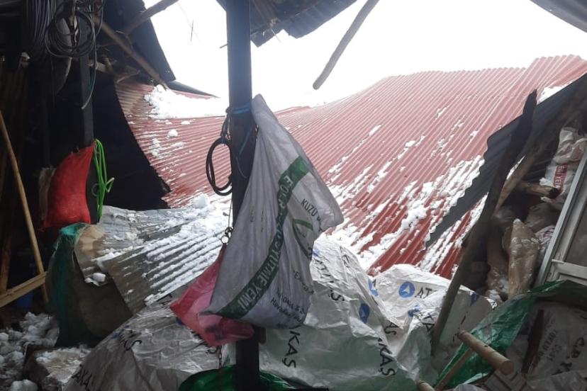 Elazığ’da etkili olan kar ve fırtına nedeniyle, bir köydeki marketin çatısı çöktü.