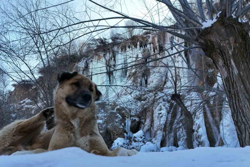 Erzincan’da doğa dondu, Girlevik Şelalesi buz kesti