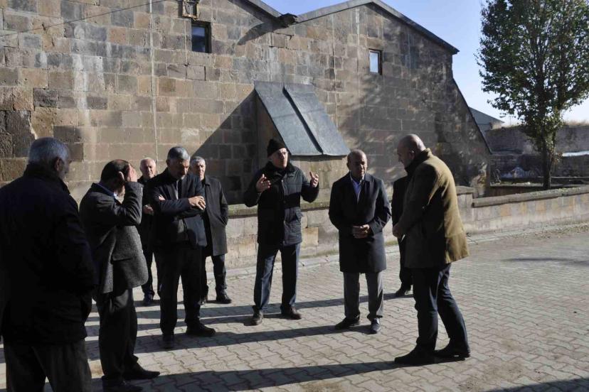 Muş Müze Müdürü Yunus Gürler ve AK Parti Bulanık İlçe Başkanı Tahir Korkmaz, külliyeyi oluşturan cami, türbe, çilehane ve havuz bölümlerini tek tek gezerek yapılan çalışmaları yerinde inceledi.