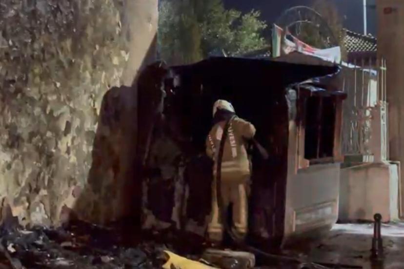 İstanbul Fatih’te cami dışındaki güvenlik kulübesi alev alev yandı.