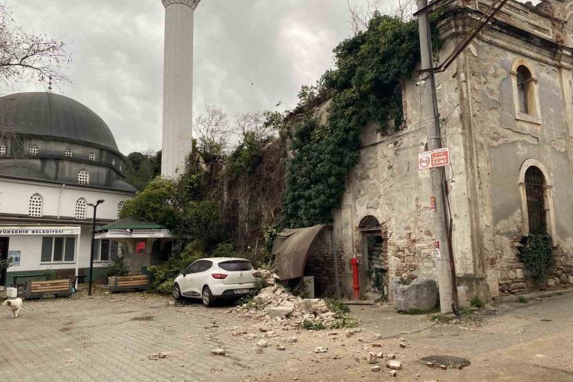 Bursa’nın Mudanya ilçesine bağlı Aydınpınar Mahallesi’nde bulunan tarihi Aydınpınar Kilisesi, etkili olan fırtına nedeniyle kısmen çöktü. Olayda çevredeki yapılar da zarar görürken, mahalle muhtarı yetkililere acil çağrıda bulundu.