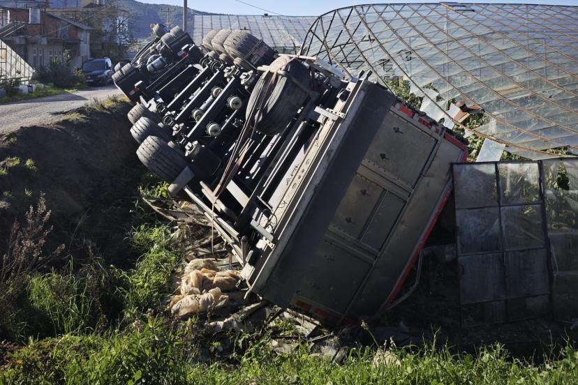 Gazipaşa’da devrilen kamyonun sürücüsü yaralandı