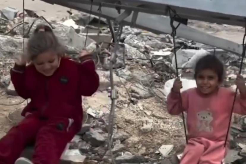Gazze'de yıkılan evlerin enkazı arasında büyüyen çocuklar, molozlarla kurdukları salıncaklarda sallanarak yaşama umuduna tutunuyor.