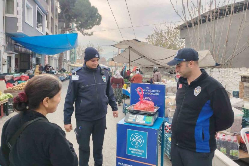 Germencik Belediyesi zabıta ekipleri, pazar yerlerinde kurulan kontrol kantarıyla vatandaşların aldığı ürünlerin gramajını ücretsiz kontrol ederek adil ve şeffaf alışverişi güvence altına alıyor.