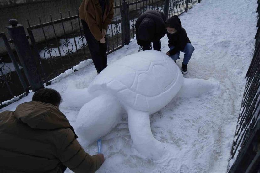 "4 saatlik çalışmayla kardan kaplumbağa yaptık"
