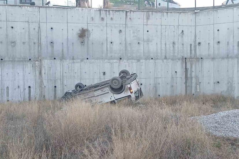 Hafif ticari araç 8 metrelik istinat duvarından sahaya uçtu: 1 ağır yaralı