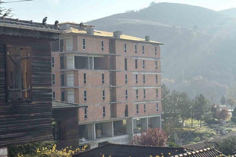 Karabük’te 6 katlı bir inşaatın çatısında işçilerin herhangi bir güvenlik önlemi almadan çalıştığı anlar cep telefonu kamerasına yansıdı.