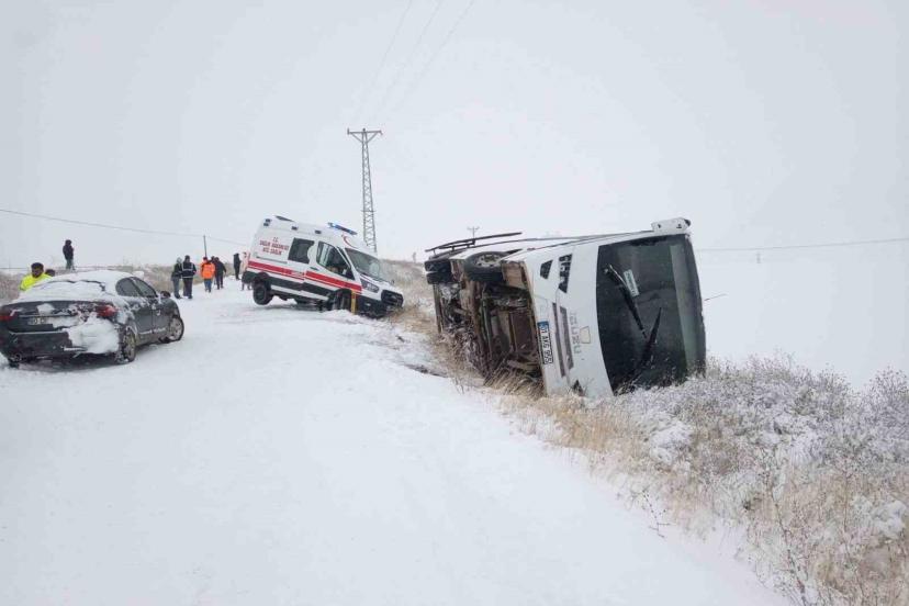 İşçi servisi devrildi, yardıma giden ambulans kara saplandı