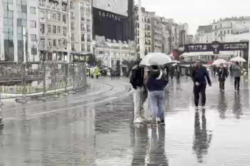 Sağanak sırasında bazı kişiler tramvay durağı ve kapalı alanlara sığınırken, bazıları ise yağmura aldırış etmeden yürümeyi sürdürdü.