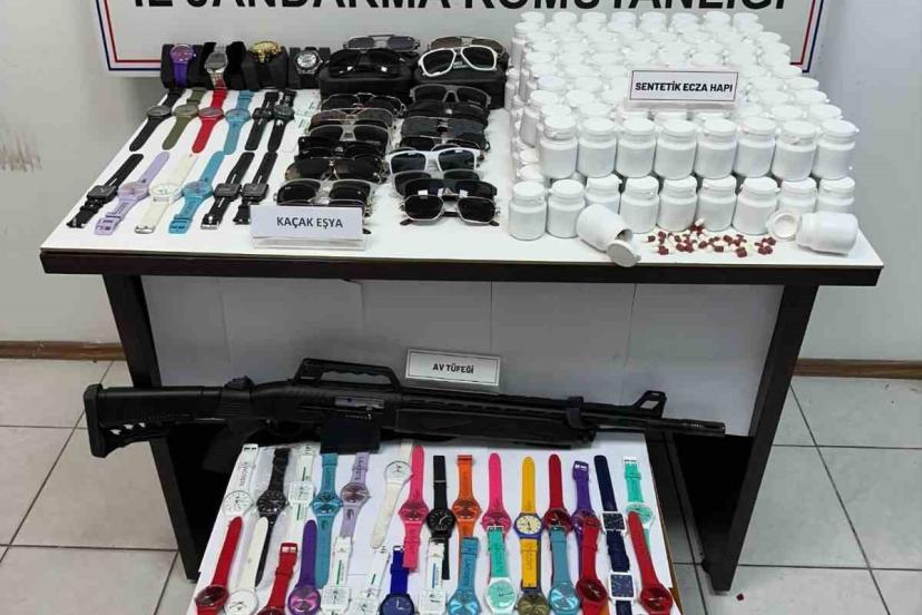 Samsun İl Jandarma Komutanlığı ekipleri tarafından Tekkeköy ilçesinde alınan istihbarat bilgiler doğrultusunda bir adrese operasyon düzenlendi. Yapılan aramalarda, 10 bin 136 adet sentetik ecza hapı, 1 adet sarılmış esrarlı sigara, 1 adet ruhsatsız av tüfeği, 93 adet saat ve 40 adet gözlük ele geçirildi.