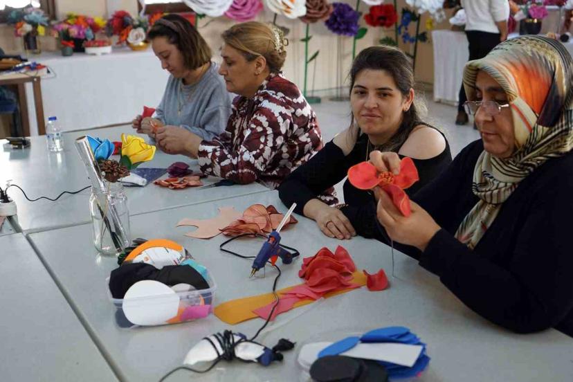 Kadın Sanat ve Yaşam Merkezi Atölyeleri’nde eğitimler tüm hızıyla sürerken, yüzlerce kadın hem üretmenin hem de birlikte güçlenmenin mutluluğunu yaşıyor. Üngüt Cemile Akkoyun Millet Konağı, Gülsüm Hanım Gümüşer Sosyal Tesisi ve Karaziyaret Sosyal Tesisi olmak üzere 3 ayrı merkezde faaliyet gösteren Kadın Sanat ve Yaşam Merkezi Atölyelerinde tezhip sanatı, çini, yapay çiçek yapımı, geleneksel Türk el nakışları, giyim, sim sırma, ahşap boyama ve kâğıt rölyef atölyelerine toplam 310 kadın katılım sağlıyor. Alanında uzman usta öğreticiler tarafından verilen eğitimlerle kadınlar, geleneksel ve modern el sanatlarını öğrenirken el becerilerini geliştiriyor. Atölyeler, katılımcılara yalnızca yeni hobiler ve meslekler kazandırmakla kalmıyor; aynı zamanda sosyalleşme, yeni arkadaşlıklar kurma ve günlük yaşamın stresinden uzaklaşma imkânı da sunuyor.