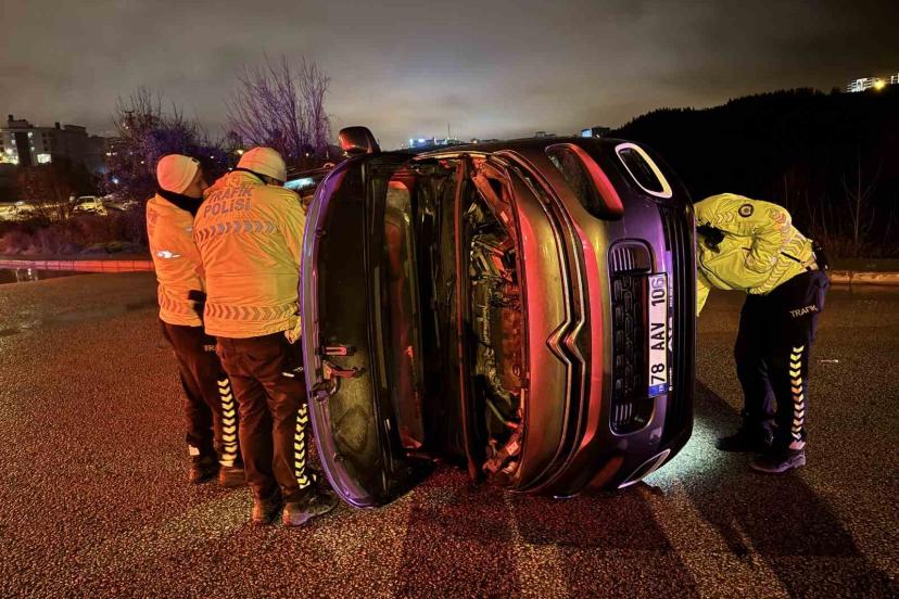 Kaza 100. Yıl Mahallesi 1010 Nolu Sokak’ta meydana geldi. Kimliği belirlenemeyen sürücü idaresindeki 78 AAV 106 plakalı hafif ticari araç Safranbolu istikametine seyir halindeyken kaldırıma çarpıp yaklaşık 50 metre ilerledikten sonra devrildi. Kazada araçta bulunan Ezgi Ç. yaralandı. İhbar üzerine olay yerine polis, itfaiye ve 112 Acil Servis ekipleri sevk edildi. Araçta sıkışan yaralı diğer sürücülerin yardımıyla çıkarılırken sağlık ekiplerinin ilk müdahalesinin ardından hastaneye kaldırıldı.
