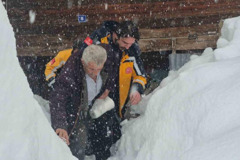 Kar nedeniyle evinde mahsur kalan hastayı sağlık ekipleri kurtardı