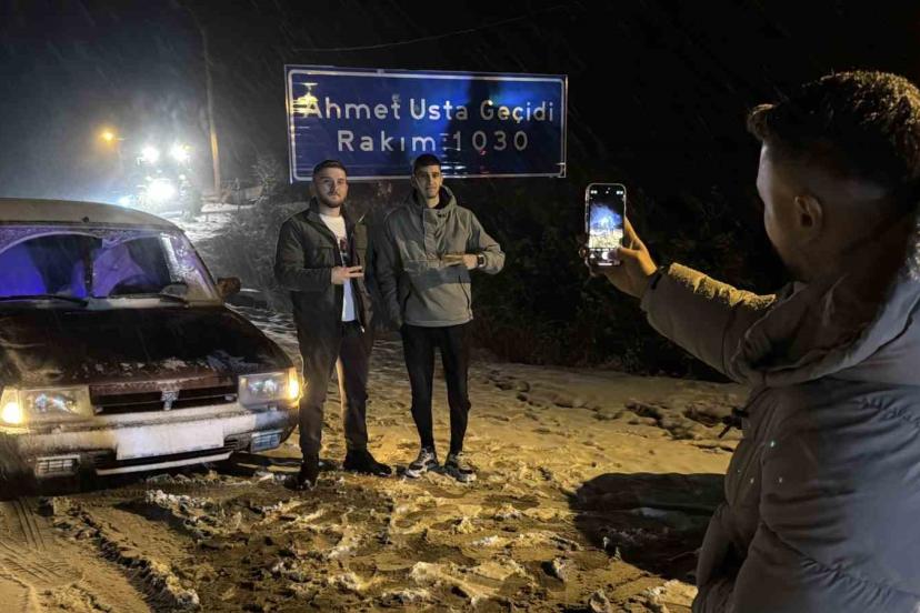 Kar yağışını fırsat bilen vatandaşlar, bin 30 rakımlı Ahmetusta Geçidi’ne akın etti. Bölgeye gelenler ateş yakarak ısınırken, bol bol fotoğraf çektirip karın keyfini çıkardı.