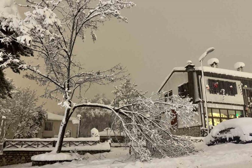 Karabük’ün Safranbolu ilçesinde etkisini sürdüren kar yağışı nedeniyle birçok noktada karın ağırlığına dayanamayan ağaçların ...