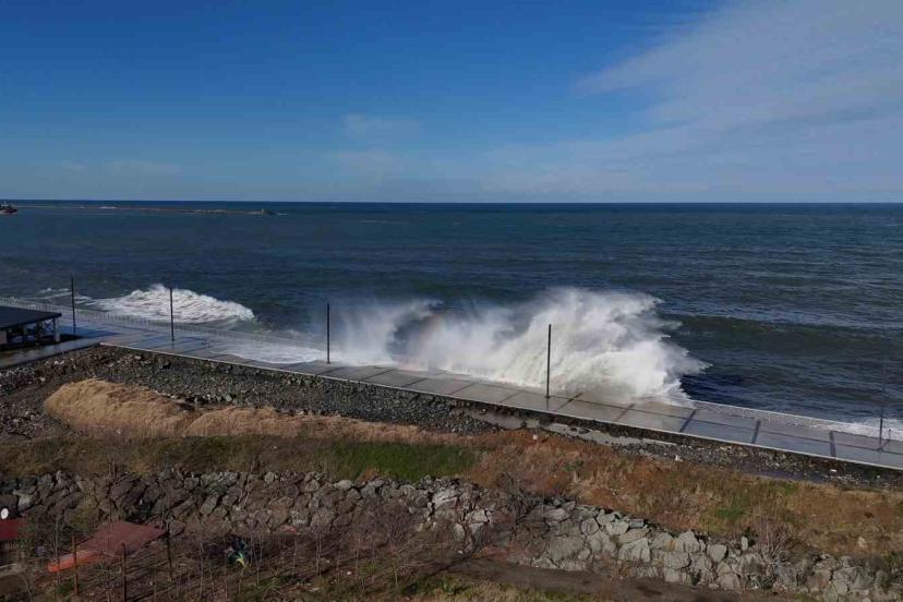 Karadeniz’de etkili olan fırtınanın getirdiği dalgalar Rize Sahili’nde havadan görüntülendi.