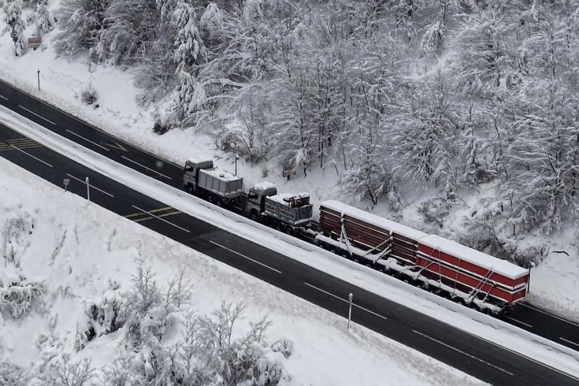 İstanbul’dan Hatay’a köprü ayağı getirmek için 2 gün önce yola çıkan tır, Bolu Dağı’nda etkili olan kar yağışında rampa çıkamayınca yolda kaldı. Kontrollü bir şekilde boş alana alınan tır için yolların açılmasının ardından kurtarma çalışması başlatıldı. Tek çekici ile kaldığı yerden çıkarılamayan köprü ayağı yüklü tır, 2 çekici ile birlikte bulunduğu yerden çıkarılarak Hatay’a gönderildi. O anlar ise havadan görüntülendi.