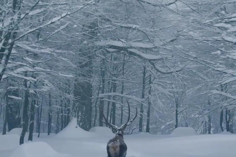 Karla kaplı Kartepe’de kızıl geyik güzelliği
