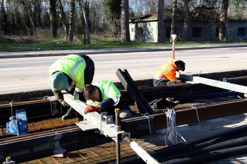 Kartepe tramvay hattında ray döşeme çalışmaları başladı