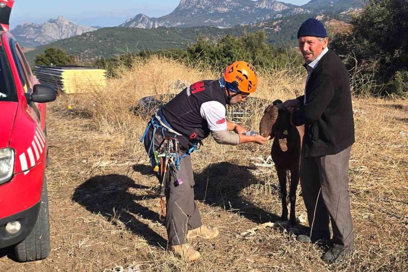 Korkuteli ilçesi Güzle köyü dağlık alanda sahibi tarafından otlatıldığı sırada bir keçi kaya oyuğuna düştü. Sahiplerinin keçiyi kendi imkanlarıyla sıkıştığı yerden çıkarma çabaları sonuç vermeyince, durum arama kurtarma birimlerine bildirildi. İhbarla Antalya’dan yola çıkan ve Güzle köyüne gelen arama kurtarma ekibi, keçiyi bulunduğu yerden kurtarmak için harekete geçti. İple erişim teknikleri kullanılarak keçiye ulaşan arama kurtarma ekibi yaklaşık 2 saatlik çalışma ile mahsur kaldığı yerden çıkartarak sahibine teslim etti.