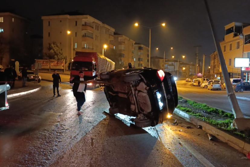 Bursa’nın İnegöl ilçesinde yağış nedeniyle kayganlaşan yolda kontrolden çıkan otomobilin takla atarak direğe çarıptığı kazada 3 kişi yaralandı.