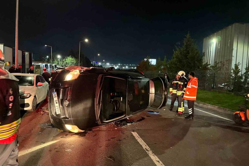 Tekirdağ’ın Çerkezköy ilçesinde alkollü bir sürücünün kontrolünden çıkan otomobil, park halindeki iki araca çarptıktan sonra yan yattı.